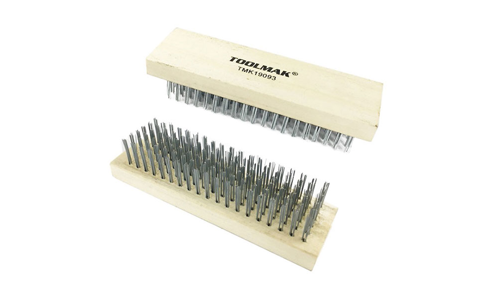 Cepillo de alambre con bloque de madera para raspar óxido, pintura y soldadura. Perfecto para fregado intensivo. Herramientas premium para eliminar óxido con mango de madera natural y alambre de acero al carbono que ayuda a eliminar la escoria de soldadura. Ideal para limpiar parrillas de barbacoa de uso intensivo rápidamente, diseñado para eliminar óxido, sarro, restos de pintura y barniz de todas las superficies.